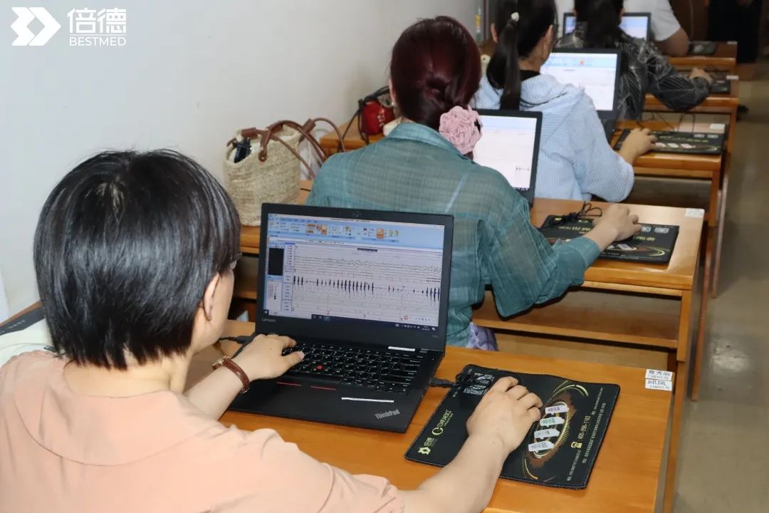 培训中,倍德康迪公司高威威经理介绍了倍德全系产品整体架构,包括各个产品线的主要功能、特点和应用领域,倍德康迪的产品以其先进的技术、卓越的性能赢得了市场的广泛认可。未来,倍德康迪将继续秉承“打造睡眠健康生态体系”的理念,为更多用户提供优质的睡眠健康服务。培训内容从睡眠医学基础理论,睡眠技术的基本原理讲起,采用理论授课+实践操作+计算机阅图相结合的方式,并在医院技能中心准备了模拟人,计算机实践阅图操作,通过手把手的教学,实践佩戴,阅图及报告出具全方位提升各位学员的实际操作能力。